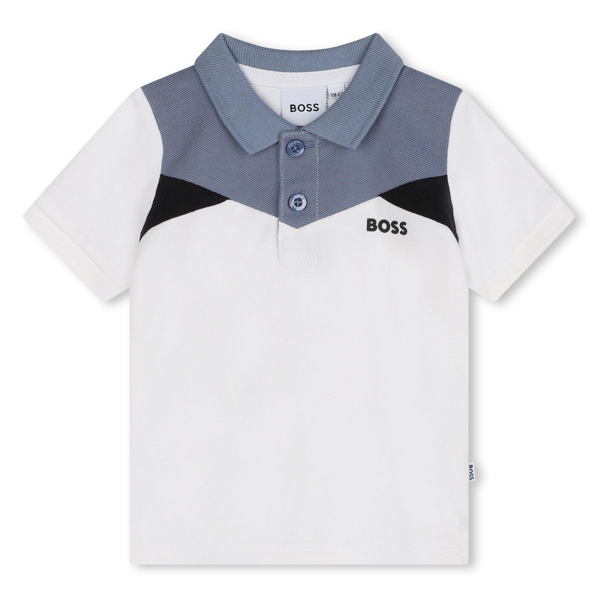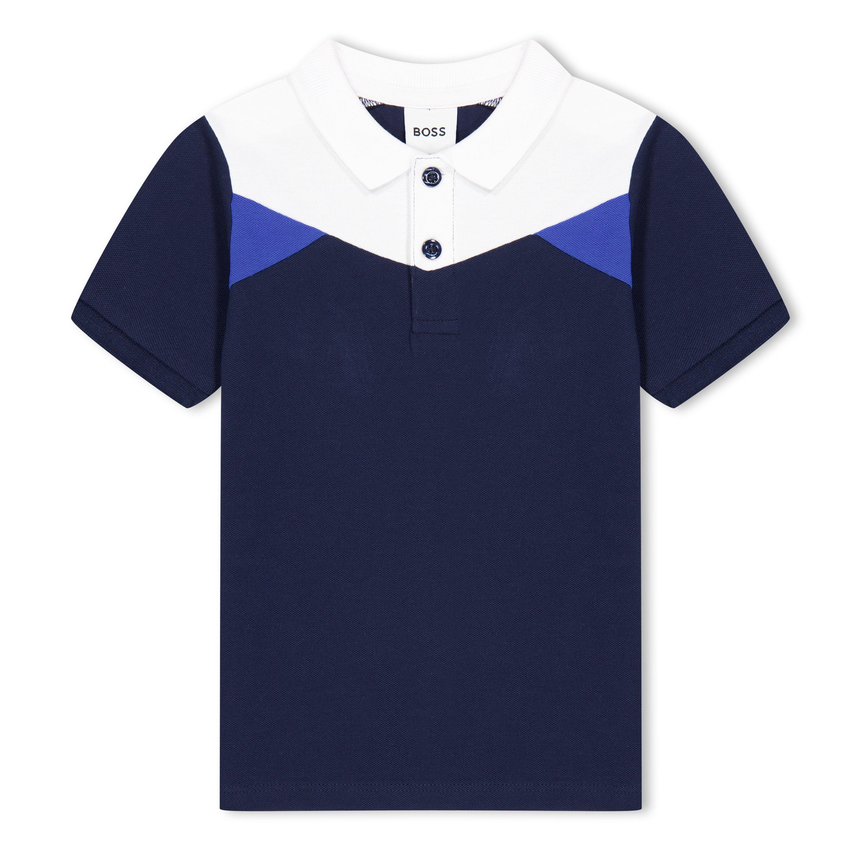 Esta camisa polo de manga curta BOSS Kids' Block traz linhas limpas e um estilo clássico aos guarda-roupas jovens. Projetada com um colarinho clássico e uma pala estruturada, apoia dias ativos com conforto flexível.