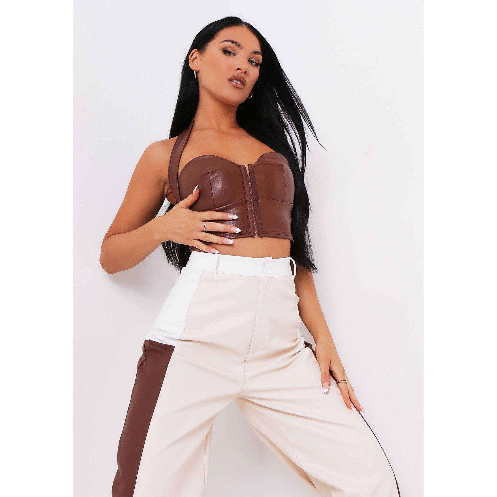 Missy Empire PU Halterneck Crop Top