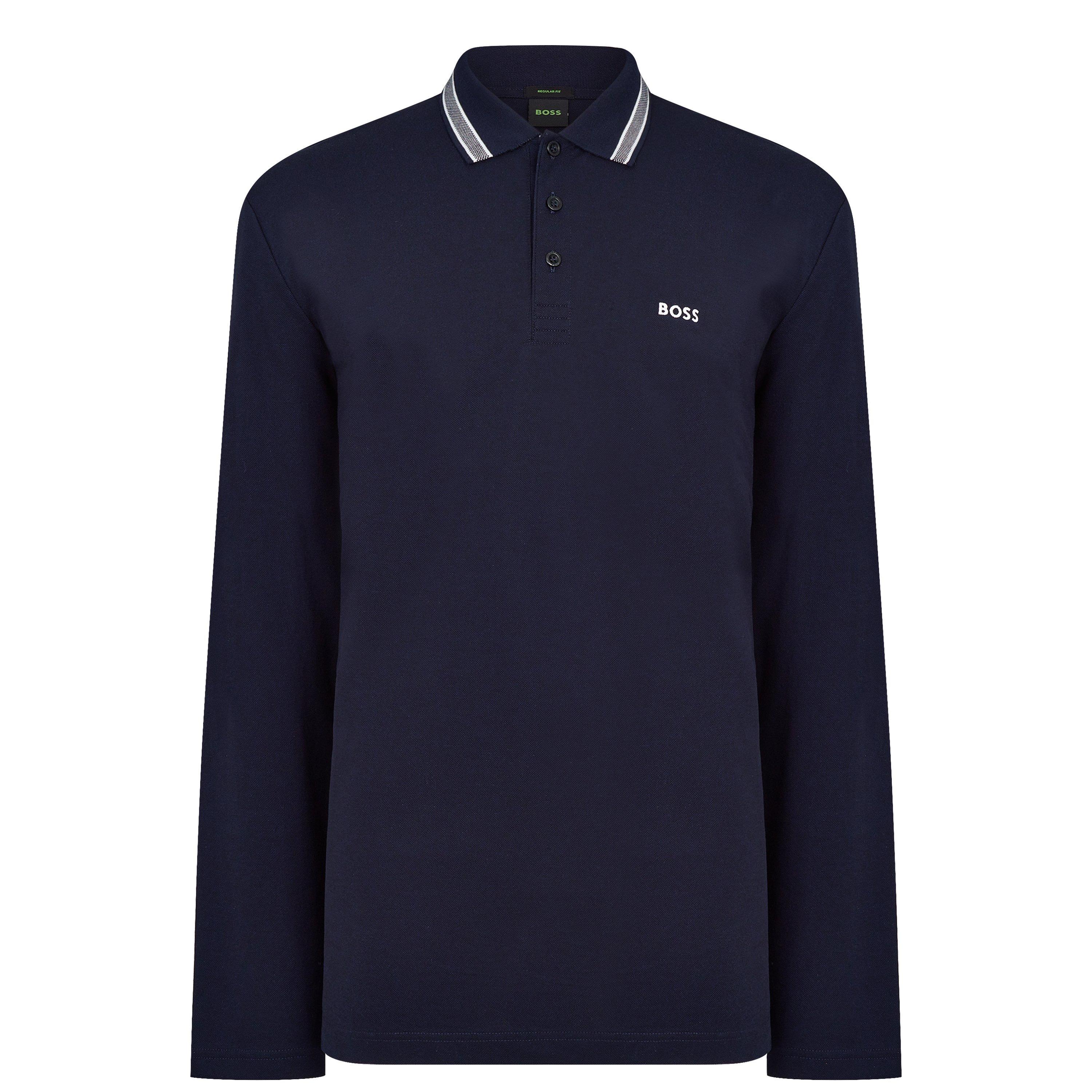 Boss Men's Plisy Tipped Collar Cotton Long Sleeve Polo Shirt