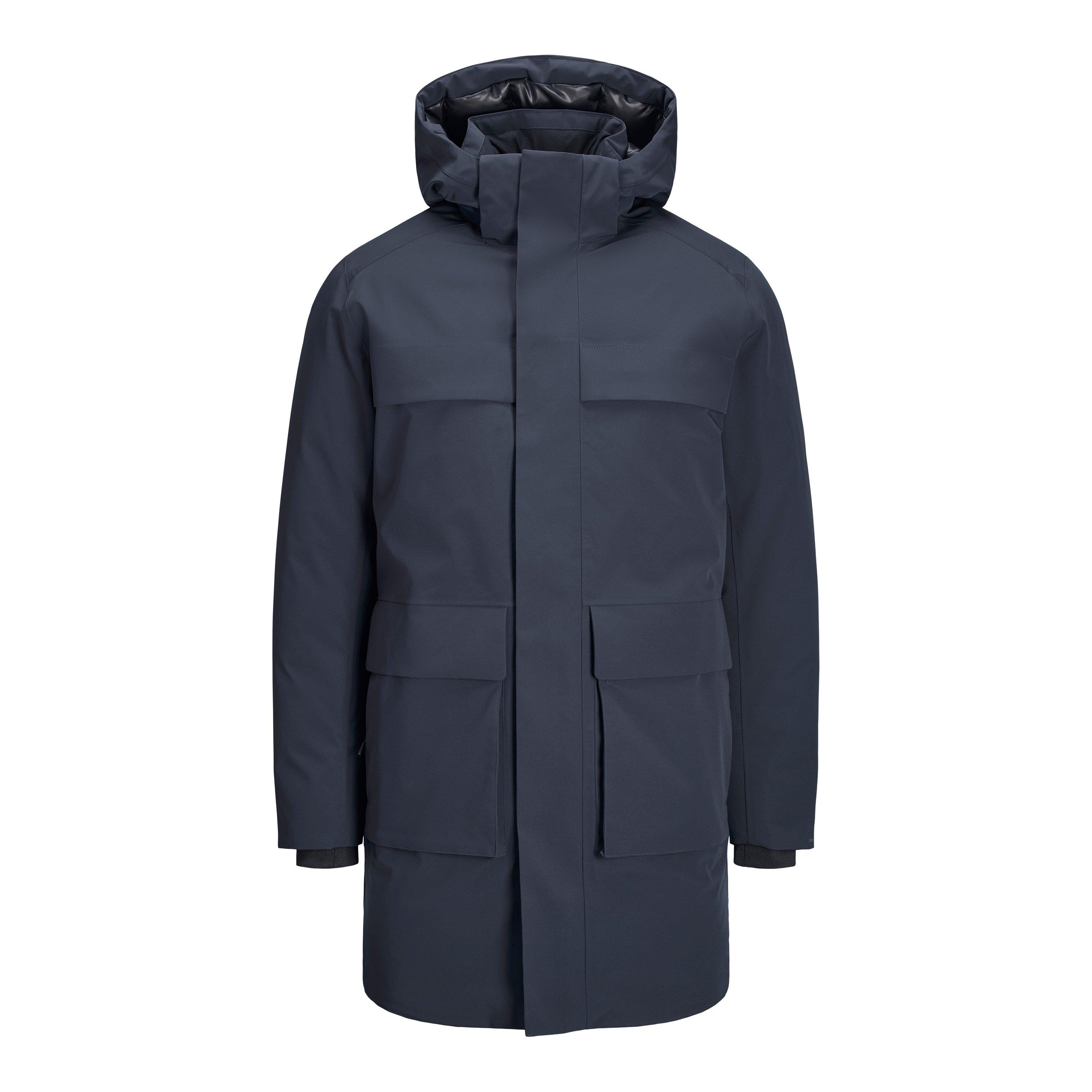 A parka de inverno isolada Jack and Jones Blawave oferece proteção contra o frio com uma forma estruturada. Este casaco de inverno longo apresenta isolamento prático e painéis inspirados na cidade, oferecendo cobertura essencial para o inverno com detalhes protetores.