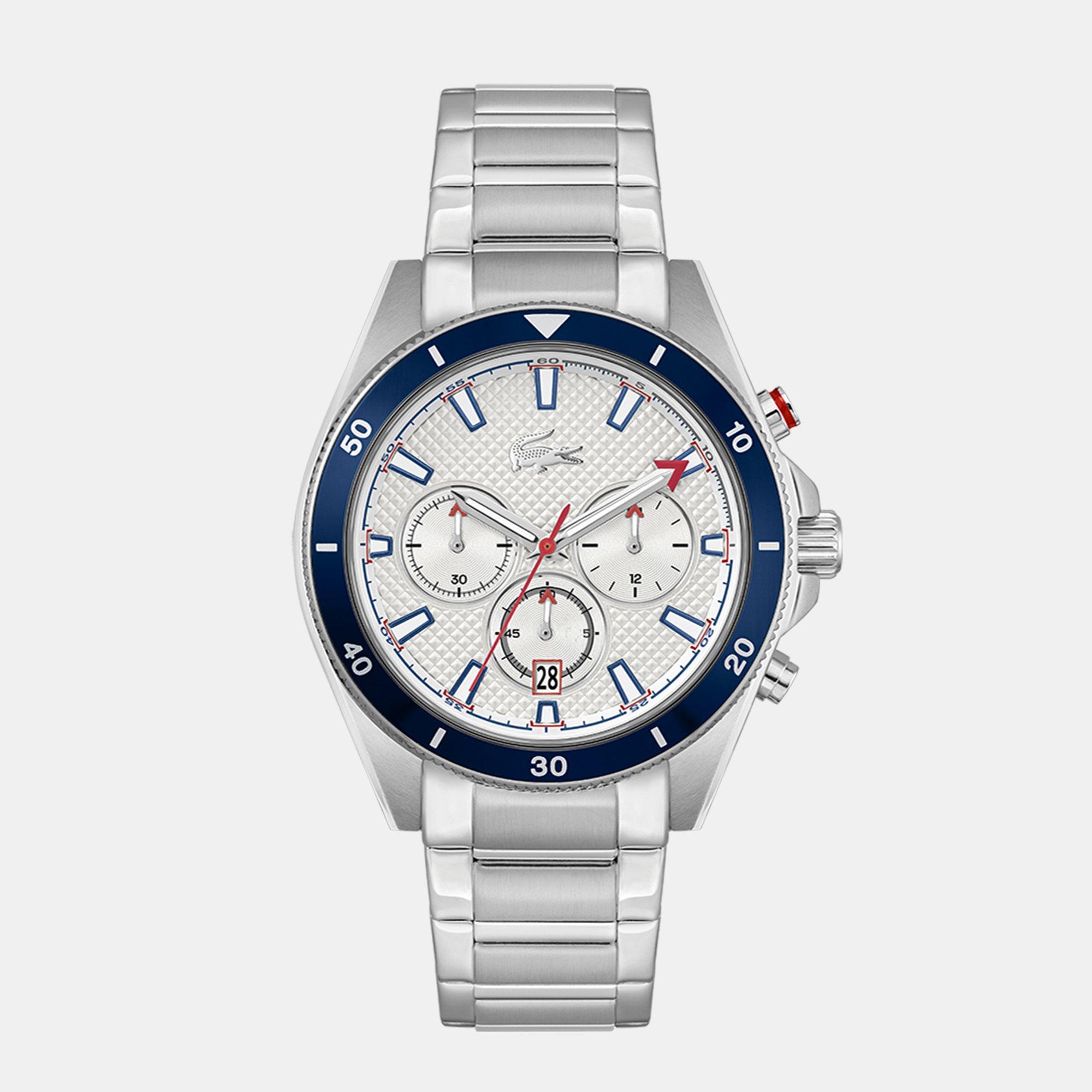 A Lacoste destaca a sua experiência em cor através de uma palete inspirada na náutica ao apresentar o Mainsail, um relógio desportivo contemporâneo com uma série de elementos de design marcantes. Este cronógrafo desportivo incorpora toques inesperados de cor por toda parte - incluindo nos três sub-dígitos, nos ponteiros e em um dos botões - enquanto o seu bezel de moeda apresenta um inserto de alumínio colorido. O mostrador texturizado contrasta com os sub-dígitos em raios de sol para adicionar ainda mais interesse a este clássico relógio Lacoste, que está equipado com uma bracelete de elos em aço inoxidável ou uma pulseira de silicone com uma faixa desportiva. 5 ATM