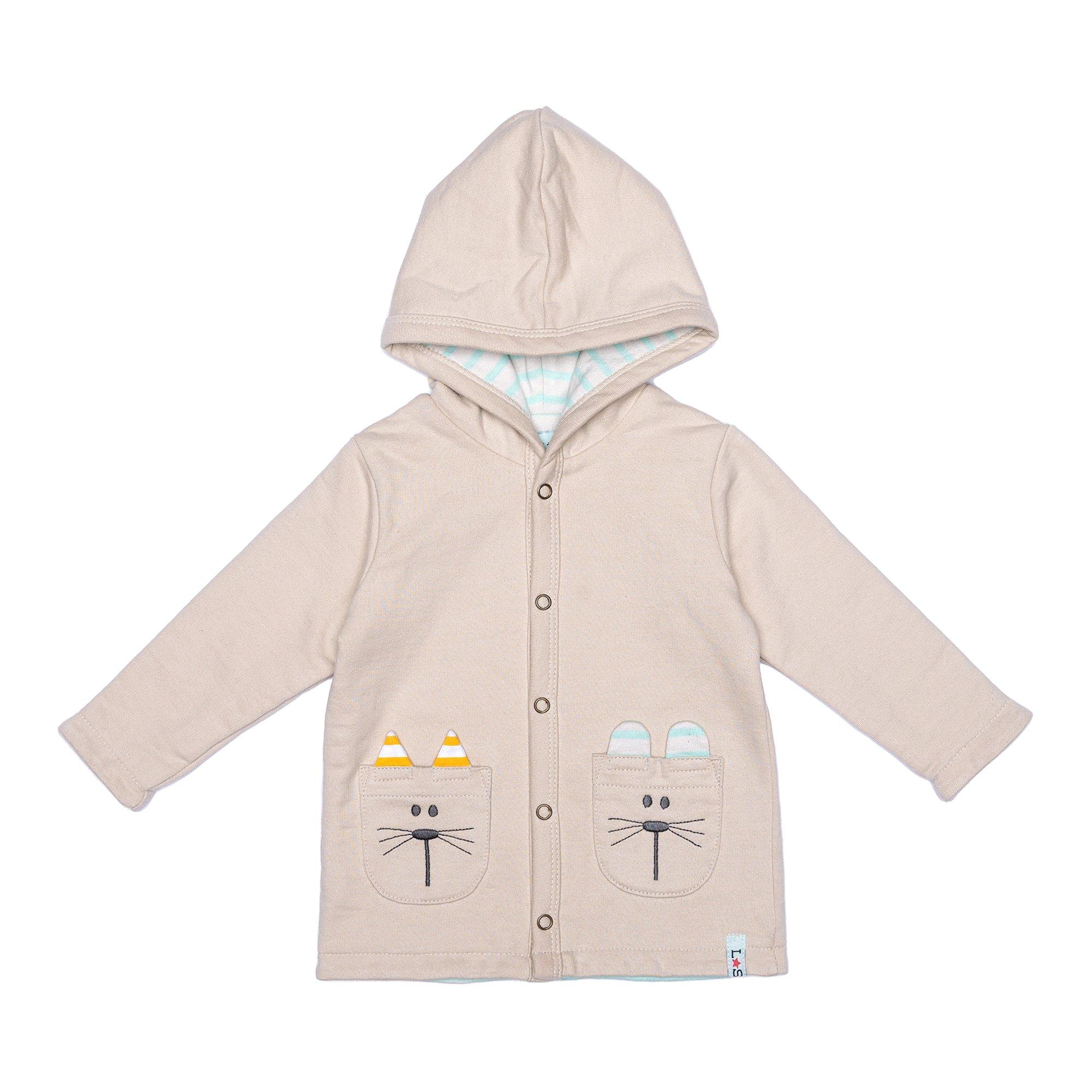 - Capuz prático e bolsos adicionam funcionalidade diária, adorarão os nossos amigos de bolso de personagens de um lado e a risca azul do outro! Encontre fechos de botão de pressão sem níquel para fácil vestir, bolsos para tesouros escondidos e capuz para maior aquecimento.