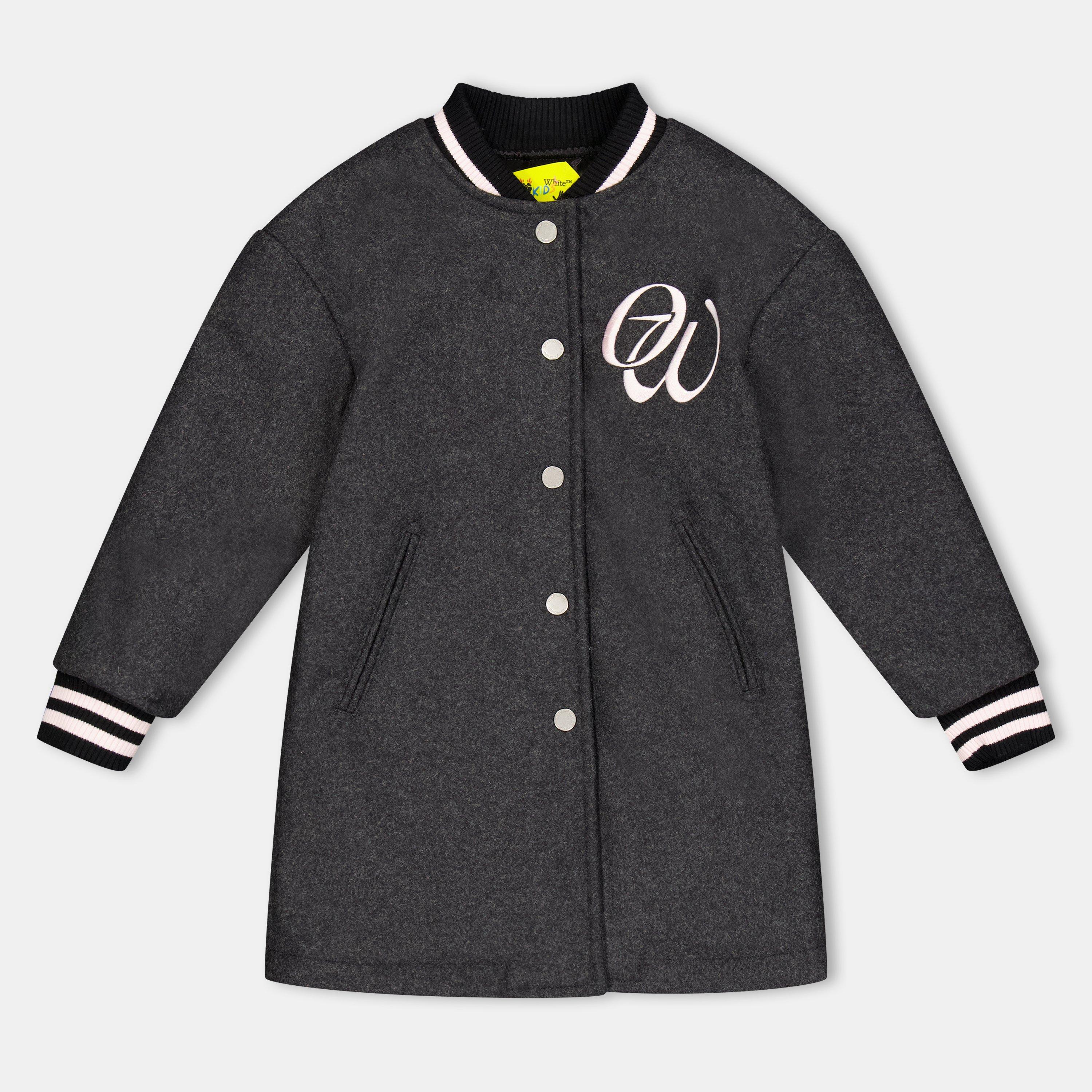 A jaqueta varsity de lã e couro para crianças da Off-White une a herança colegial com um design contemporâneo. Com um corpo de lã e detalhes em couro, esta interpretação moderna de um estilo clássico mantém a estética autêntica da varsity com detalhes práticos para o uso diário.