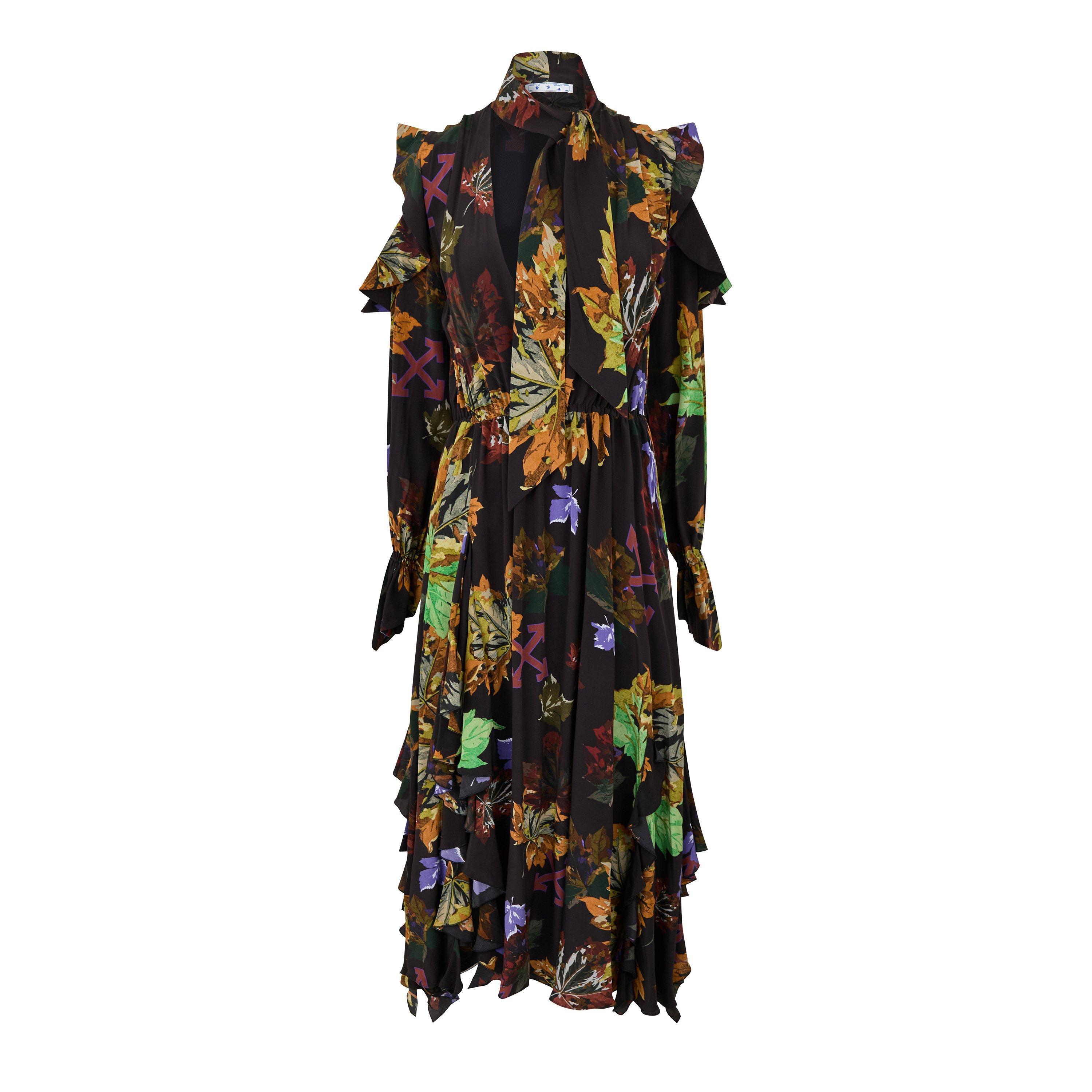 Vestido Romântico Leaves apresenta um comprimento maxi fluido. Este design elegante combina detalhes românticos delicados com linhas limpas para uma peça de moda contemporânea.