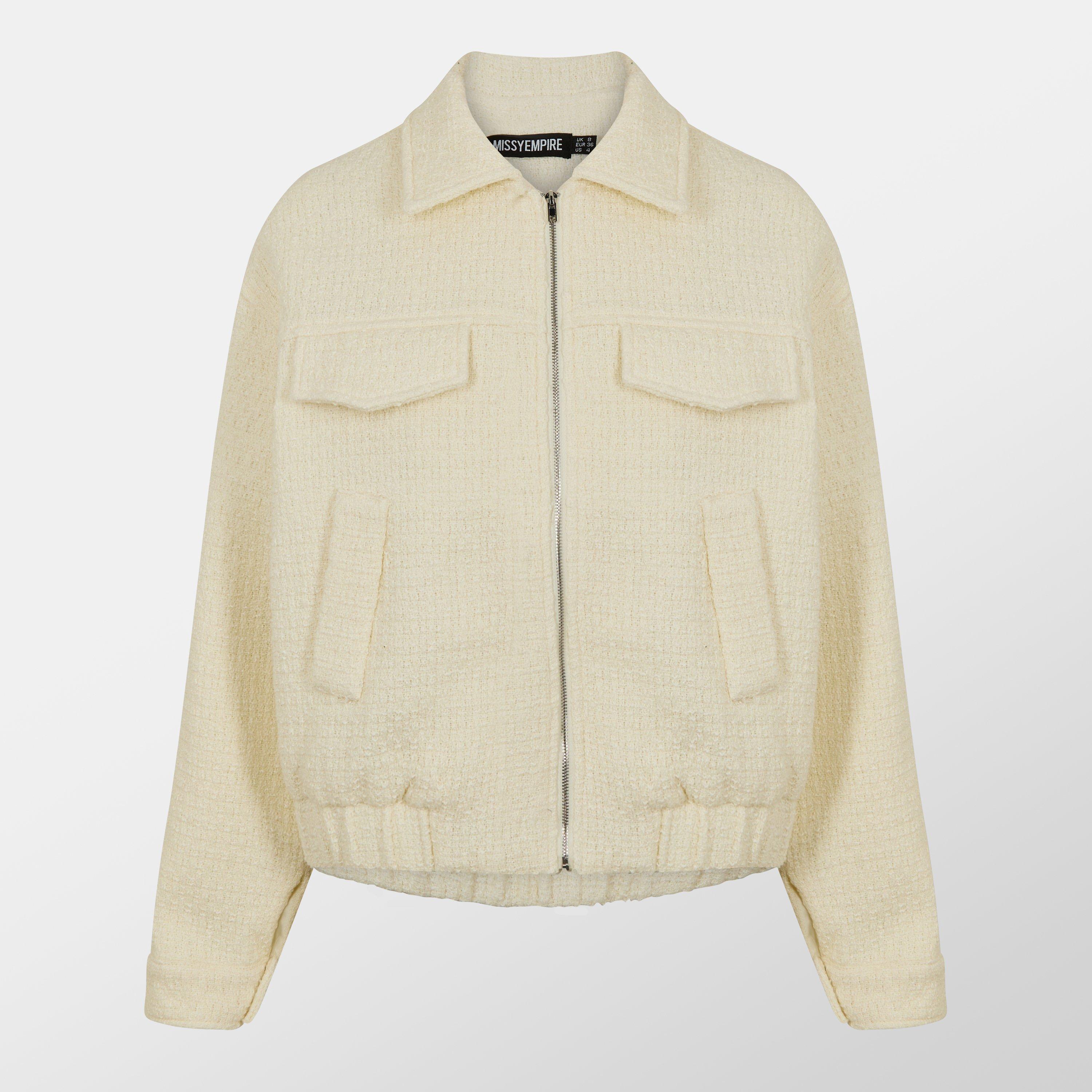 Women's Boucle Textured Long Sleeve Bomber Jacket