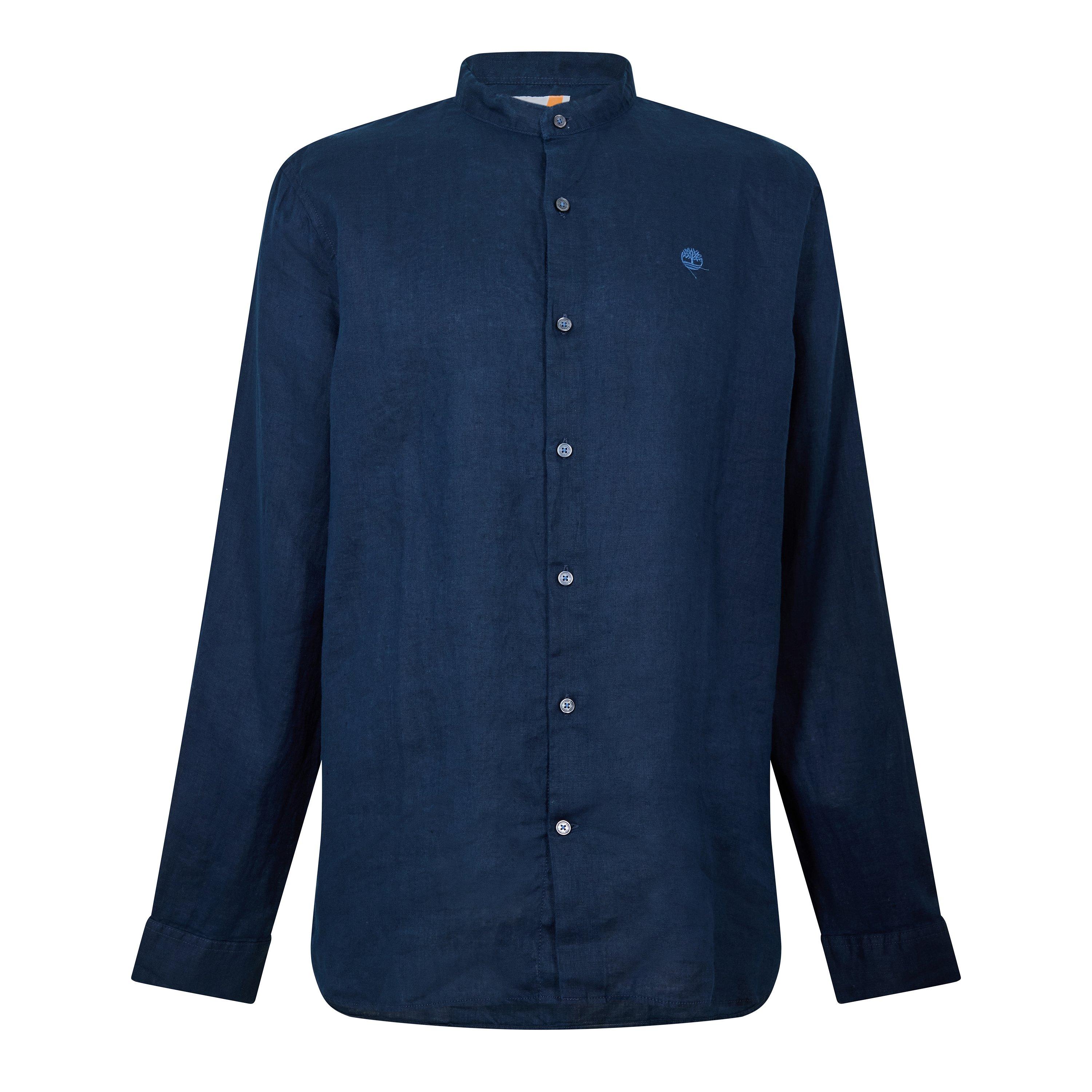 Men's Linen Korean Collar Long Sleeve Oxford Shirt