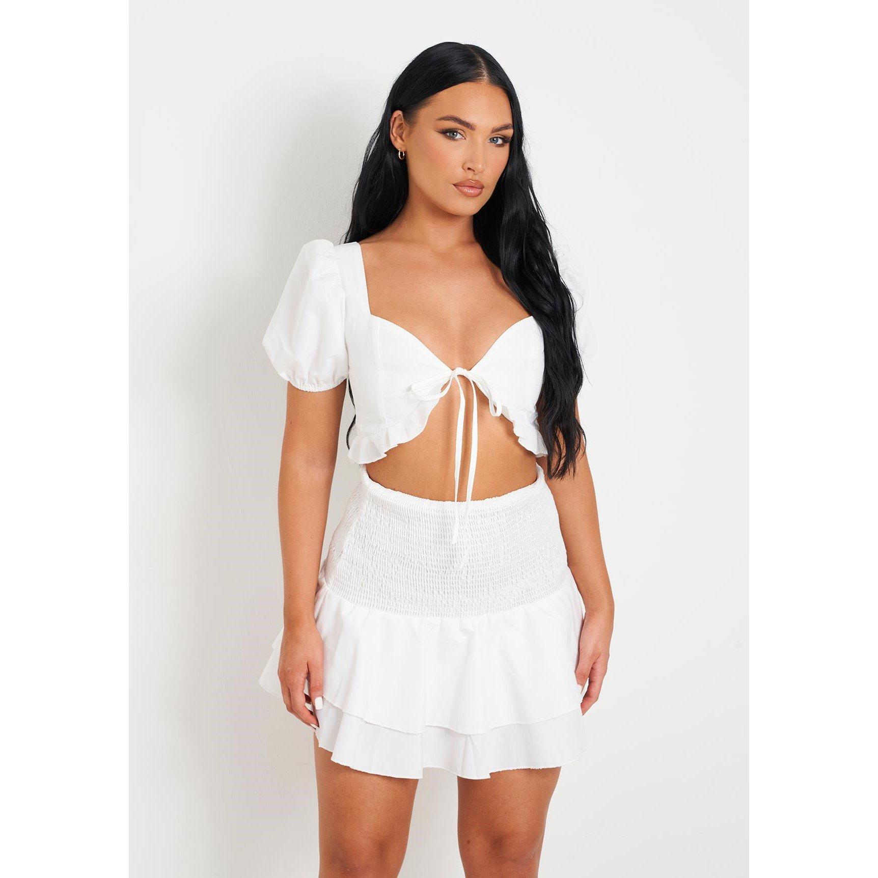 Missy Empire Woven Shirred Back Tie Front Crop Top
