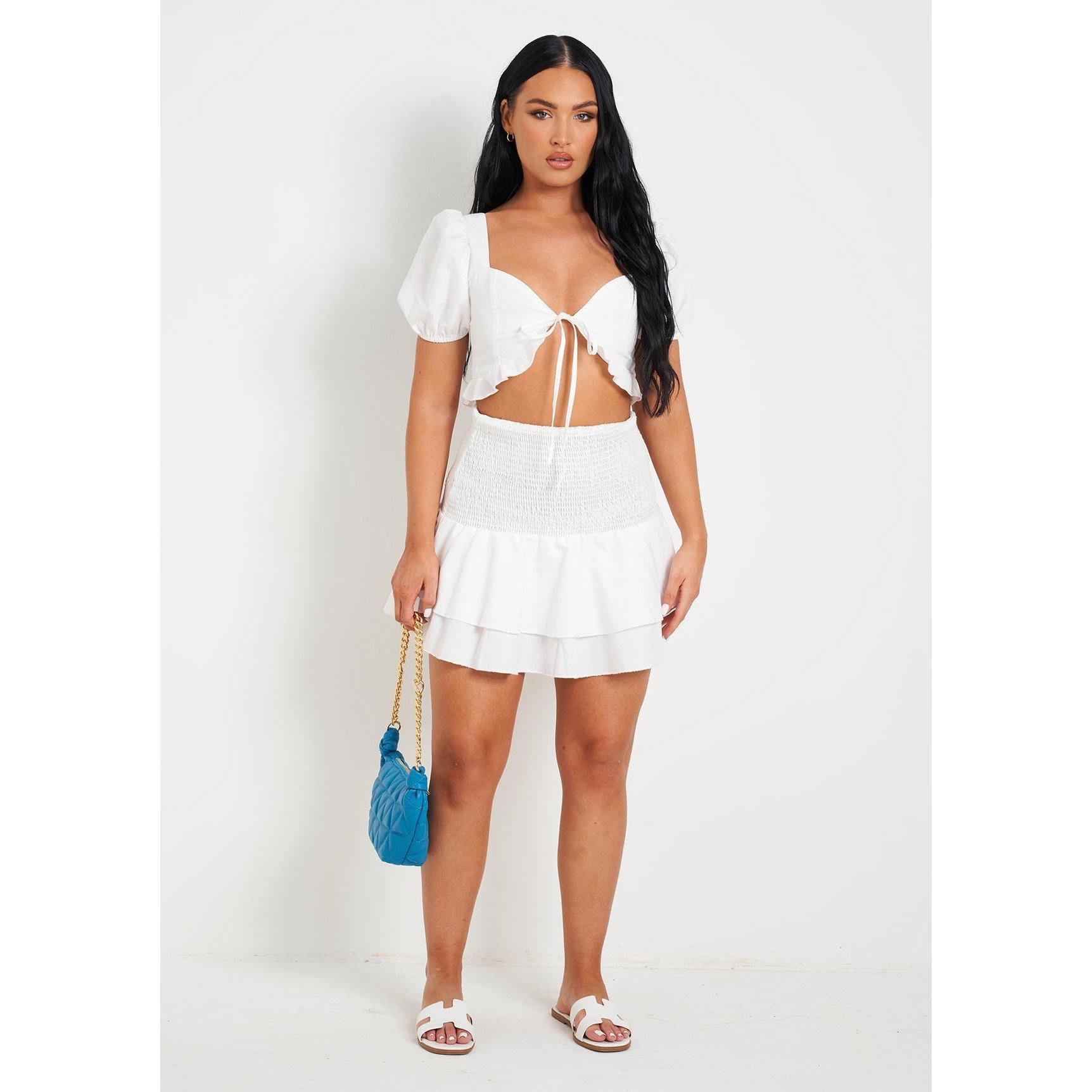 Missy Empire Shirred Layered Ruffle Hem Mini Skirt