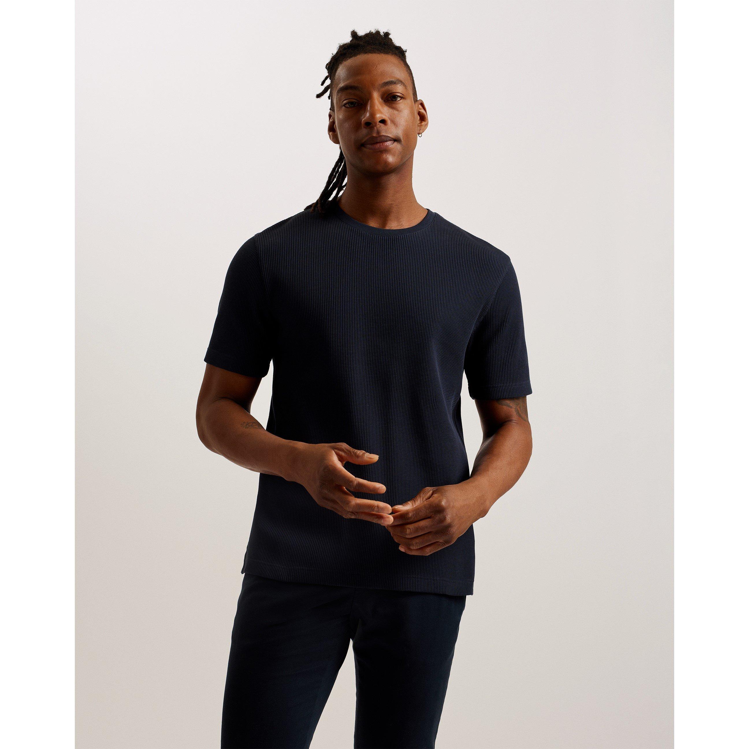 A T-Shirt de Corte Regular da Ted Baker oferece um estilo clássico para homens. O corte regular confortável mantém uma forma limpa, apresentando um decote bem construído.