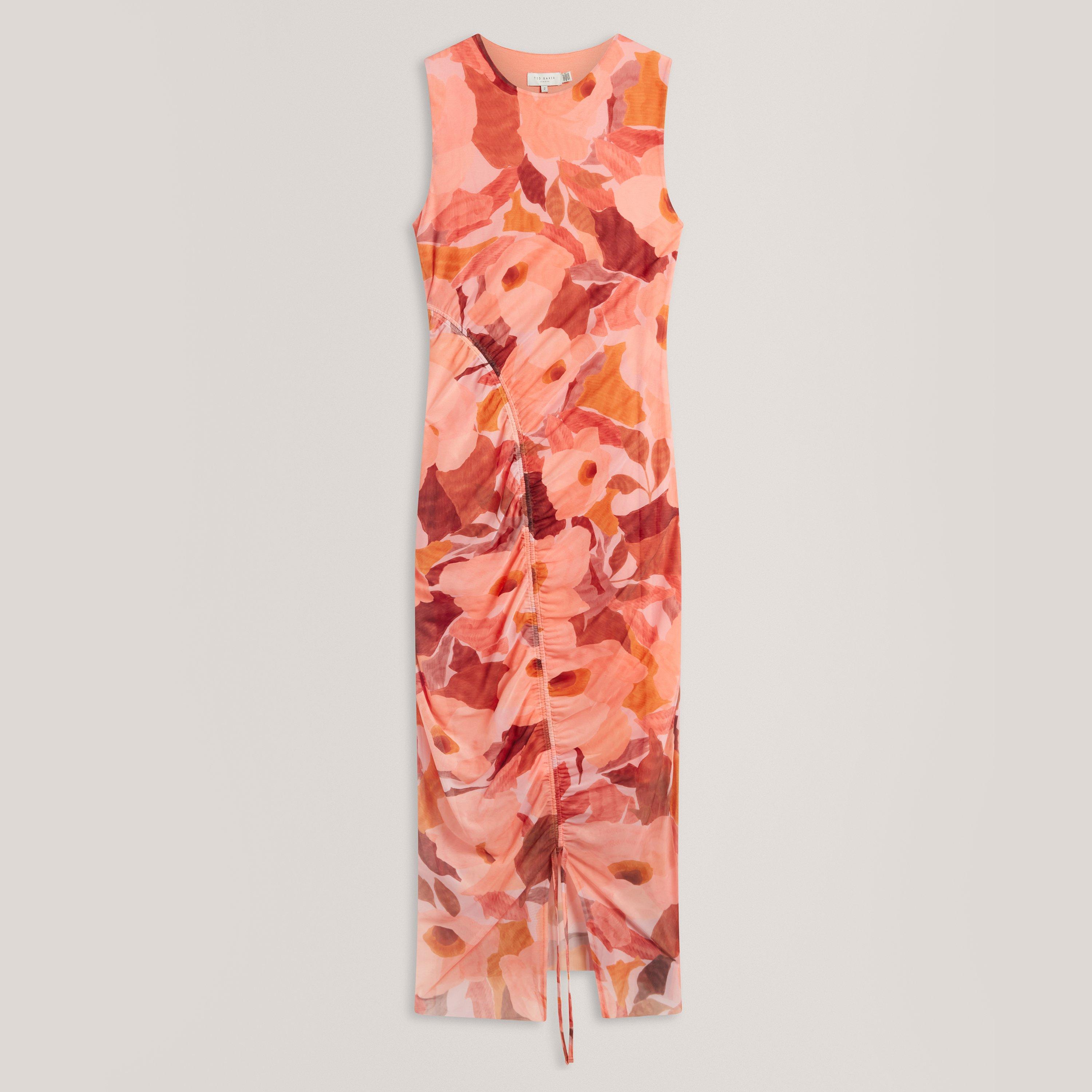 O vestido Bodycon Shift da Ted Baker apresenta um design aerodinâmico moldado próximo ao corpo. O tecido suporta o movimento enquanto mantém sua estrutura.